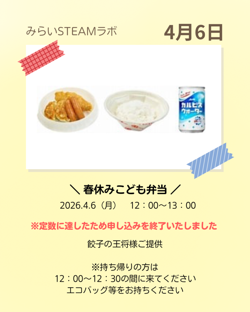※4/6の餃子の王将弁当は定数に達したため申し込みを終了しました。