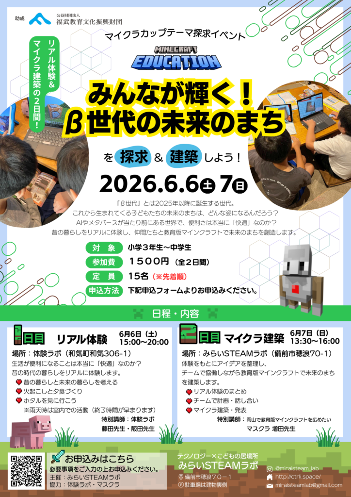 場所:みらいSTEAMラボ(備前市穂浪70-1)プログラム: