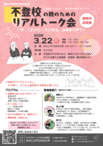 緊急開催!3/22(日) 不登校の子育て経験を持つ保護者による「不登校リアルトーク会」